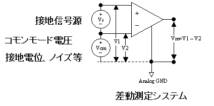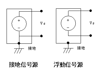 ■パソコンで測定する AIボード編 その2(基準化・インピーダンス) AIボードを使用して、アナログ信号を測定するには、信号源や測定システムの基準化の方法を知る必要があります。 一般的に「フローティング」とか「出力が浮いている」などのように言われるものがこれにあたります。 まずは、信号源の基準化の種類について説明します。 1.接地信号源 電圧の基準をアースや建物の接地箇所などにして出力します。 ※一般的に独立した2つの接地信号源には電位差が生じます。 これは、2つの接地間には、電位差が生じているからです。(通常10〜200mV) 2.浮動信号源(フローティング) 電圧の基準をアースや建物の接地箇所としません。 電圧は、端子間の電位差となります。 各端子は、電気アウトレットアースに接続されていないので、システム接地から独立しています。 例として、バッテリ、熱電対、変圧器などがあります。 次に測定システムの基準化について説明します。 1.基準測定システム 測定の基準をアースや建物の接地箇所にします。 信号源と測定システムの接地間には電位差があるので、接地信号源の測定は誤差が生じます。 2.差動測定システム 測定の基準をアースや建物の接地箇所などにしません。 入力の2つの端子の電圧をアースや建物の設置箇所を基準に測定し、その差を測定値とします。 理想的な作動測定システムではコモンモード電圧(接地と入力端子間の電圧)を完全に無視できます。 アナログ信号を測定する場合は、上記以外にも信号源のインピーダンスを考える必要があります。 バッテリ、RTD、ひずみゲージ、熱電対等の信号源は非常に低いインピーダンスなのでAIに直接接続できます。 しかし、信号源のインピーダンスが高い場合は、注意が必要です。 AIの入力インピーダンスに対する比を小さくしないと測定値に誤差が生じます。(AIの入力インピーダンスを高くする。) 信号源や測定システムの特性を理解しないで測定をおこなうと、測定値に誤差が生じます。 大切な設備を壊したり、人体に危害が加わることもあるので、しっかり理解する必要があります。 |
