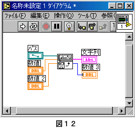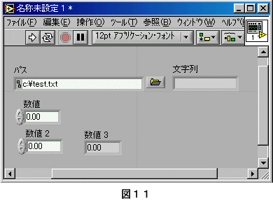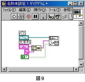 ■ファイルを使ってみよう データを保存しておくには、ファイルを使います。 LabVIEWには、いくつかのファイルを扱う関数があります。(図1) ![]() ここでは、簡単なファイルの使用方法について説明します。 1.データを保存する まずは、データを保存してみましょう。 フロントパネルにファイルパス制御器と文字列制御器を設定します。(図2) ![]() 次にダイアグラムに「Write Characters To File」関数を設定します。(HELPで端子名を確認) 「ファイルパス (空の場合、ダイアログ)」に「パス」を「文字列」に「文字列」を接続します。(図3) ![]() 「パス」に適当なファイル名(パスを含む)を「文字列」に「Hellow」と入力して実行してみてください。(図4) ![]() 指定したパスにファイルができているはずなので、ファイルを開いて中身を確認してください。 「Hellow」と入っていましたか? 2.保存したデータを読込む 1.で作ったファイルを読込むにはどうすればいいでしょうか? フロントパネルにファイルパス制御器と文字列表示器を設定します。(図5) ![]() 次にダイアグラムに「Read Characters From File」関数を設定します。(HELPで端子名を確認) 「ファイルパス (空の場合、ダイアログ)」に「パス」を「文字列」に「文字列」を接続します。(図6) ![]() 「パス」に1.で作成したファイル名(パスを含む)を入力して実行してみてください。 「文字列」に「Hellow」と表示されましたか? (図7) ![]() 3.データを追加する さて、保存するデータは1つとは限らず、複数のデータを一つのファイルに保存したい場合があります。 その時はどうすればいいでしょうか? 1.で作ったViのダイアグラムを見ます。 「Write Characters To File」関数の「ファイルに連結? (新規ファイル:F)」端子にブール定数の「True」を接続します。(図8) ![]() 「パス」に適当なファイル名(パスを含む)を「文字列」に「World」と入力して実行してみてください。 1.で作成したファイルを開いて中身を確認してください。 「HellowWorld」と入っていましたか? 4.データを一行づつ追加する 3.の方法では、データの区切りがわからないので、読込んだ時困ります。 そこで、データ間に区切り(カンマ、タブ、復帰改行等)文字を入れてデータを区切ります。 区切り文字を「復帰改行」にすると、「復帰改行」をデータの区切りと認識するViを使って必要なデータを抽出できます。 3.で作ったViのダイアグラムを見ます。 ダイアグラムに「復帰改行」定数と「Concatenate Strings」関数を設定し、接続します。(図9) ![]() 「文字列」を空白のまま一回実行します。 次に「文字列」に「Good Night」と入力して実行してみてください。 1.で作成したファイルを開いて中身を確認してください。 「HellowWorld」のあと改行されて「Good Night」と入っていましたか? 5.データを一行づつ読込む 4.で作成したファイルを2.で作成したViで読込んでみてください。 「文字列」の表示エリアを下に大きくしてみると、「HellowWolrd」と「GoodNight」が改行されて表示されていますか?(図10) ![]() これでは、区切り文字を入れた意味がありません。 そこで、一行ずつ読込む方法を次に示します。 4.で作成したViのフロントパネルにデジタル制御器を2つ、デジタル表示器1つを設定します。(図11) ![]() ダイアグラムの「Read Characters From File」関数を削除します。 次に「Read Lines From File.vi」関数を設定します。(HELPで端子名を確認) 「ファイルパス (空の場合、ダイアログ)」に「パス」を「文字列」に「文字列」を接続します。 「行数 (全て:-1)」に「数値」を「読み取りオフセットの開始 (文字:0 )」に「数値2」を接続します。 「読み取り後のマーク (文字)」に「数値3」を接続します。(図12) ![]() 「数値」に「1」を入力し、実行しましょう。 「文字列」に「HellowWorld」、「数値3」に「13」と表示されましたか?(図13) ![]() 次に「数値2」に「数値3」に表示された「13」を設定して実行してみてください。 「文字列」に「GooodNight」、「数値3」に「25」と表示されましたか?(図14) ![]() 「数値」には、1回に読込む行数(復帰改行の数)「数値2」には、ファイルの何文字目から読込むかを設定します。 また「数値3」には、読込みの終了した位置(次に読み込みを開始する位置)が出力されます。 これらの数値をうまく利用することにより、1行づつデータを読込むことができます。 ファイル関係の関数はこの他にいろいろとあります。 ファイルの操作は、プログラム作成には、重要な技術です。 確実にマスターする必要があります。 |
