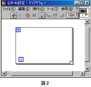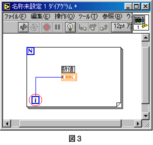■Forループストラクチャの使い方 Forループは、処理を指定回数実行します。 ●Forループの出し方 1.関数パレット→ストラクチャ(左最上段)→ケース(右から二番目最上段) 2.ダイアグラムの上で、左ボタンを押しながらマウスを動かすと破線で四角がひけいます。(図1) ![]() 3.左ボタンをはなすと、Forループストラクチャが表示されます。(図2) ![]() ●Forループストラクチャを使ってみよう 1.新規VIを開きます。 2.フロントパネルにデジタル表示器を設定します。 3.ダイアグラムにForループストラクチャを設定します。 4.デジタル表示器の端子をForループストラクチャの中に設定し、「i」端子を接続します。(図3) ![]() 5.Forループストラクチャの左上の「N」端子に数値定数を「10」と設定し接続します。(図4) ![]() 6.Forループストラクチャの中に「Wait Until Next ms Multiple」関数を設定し、文字列定数を「1000」と設定し接続します。(図5) ![]() 実行してみましょう。 デジタル表示器の値が0〜9まで変化するのを確認してください。 「N」端子に接続した値を変えて実行してみてください。 Forループストラクチャは、同じ処理を指定回数繰り返す時に使用します。 |