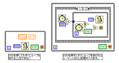 ダイアグラムの中で定期的にViを実行させたい場合、ループを廻し、「Wait